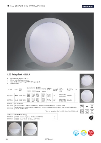 16 LED-DECKEN- UND WANDLEUCHTEN