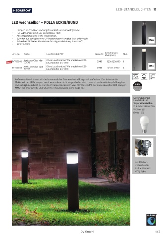 • Zylinder aus schlagfestem, UV-beständigem Acrylglas (klar oder opal). IP44