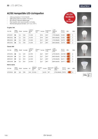 • LED-Lichtquellen für AC/DC 170-250 V. DC