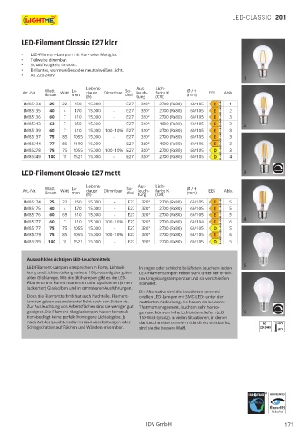 LED-Filament-Lampen entsprechen in Form, Lichtwir- In engen oder schlecht belüfteten Leuchten leiden 5