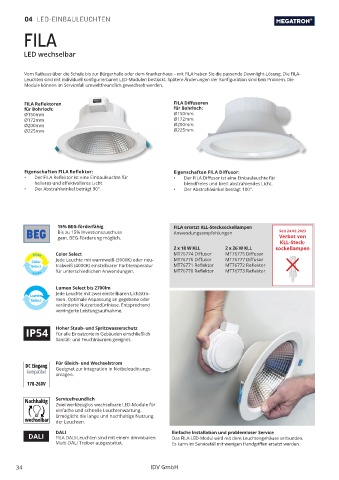 • Der FILA Reflektor ist eine Einbauleuchte für • Der FILA Diffusor ist eine Einbauleuchte für