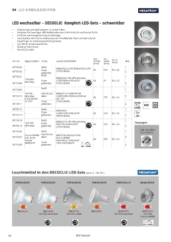 Art.-Nr. Eigenschaften Farbe Leuchtmittel PAR16 schnitt wicht Ø / H Abb.