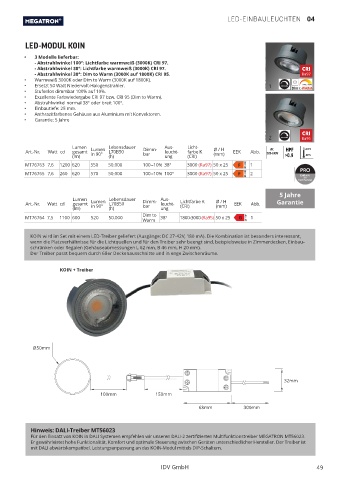 mit DALI abwärtskompatibel. Leistungsanpassung an das KOIN-Modul mittels DIP-Schaltern.