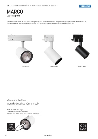 Die Leuchten der Serie MARCO sind vielseitig einsetzbare Schienenstrahler mit integrierten LED. Durch einen leichten Druck aufs