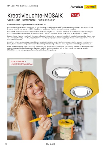 Die MOSAIK-Deckenleuchten sind in den Farbvarianten schwarz, grau und naturweiß erhältlich. Sie bestehen aus feinstem Stuckgips