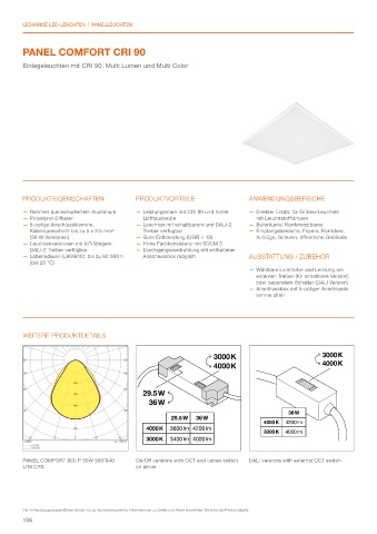 PANEL COMFORT 600 P 36W 930/940 On/Off versions with CCT and lumen switch DALI versions with external CCT switch