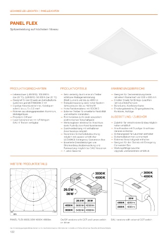 PANEL FLEX 600S 30W 4000K 4860lm On/Off versions with CCT and lumen switch DALI versions with external CCT switch
