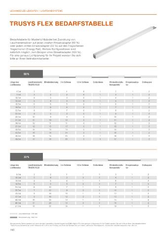 Bedarfstabelle für Musterlichtbänder bei Zuordnung von