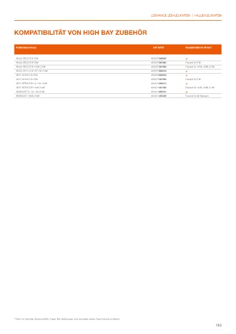 KOMPATIBILITÄT VON HIGH BAY ZUBEHÖR