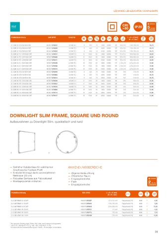 DOWNLIGHT SLIM FRAME, SQUARE UND ROUND