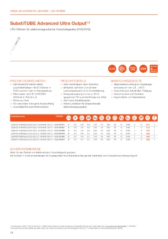 SubstiTUBE T8 EM Advanced Ultra Output 23.1 W/6500K 1500 mm 4058075612013 58 G13 1 513 23,1 3 700 160 6 500 190 83 50 000 C 10 19,60 1 SubstiTUBE T8 EM Advanced 20.6 W/6500K 1500 mm 4058075611894 58 G13 1 513 20,6 3 100 150 6 500 190 83 50 000 D 10 15,90 1