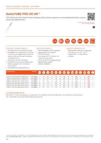 SubstiTUBE T8 UN Pro Ultra Output 15 W/6500K 1200 mm 4058075546837 36 G13 1 213 15 2 400 160 6 500 190 83 60 000 C 10 30,90 1 SubstiTUBE T8 UN Value 24 W/6500K 1500 mm 4058075546998 58 G13 1 513 24 2 800 116 6 500 190 83 30 000 E 10 23,30 1