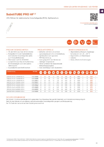 SICHERHEITSHINWEISE SubstiTUBE T8 HF Pro 20 W/3000K 1500 mm 4058075545229 58 G13 1 513 20 2 800 140 3 000 190 83 60 000 E 10 30,10 1