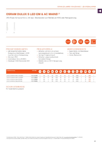 OSRAM DULUX T/E LED HF & AC MAINS 1,2 OSRAM DULUX S LED EM & AC MAINS 1,2