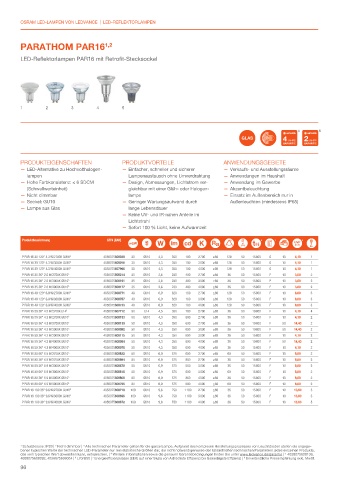 P PAR 16 35 36° 2.6 W/3000K GU10 3 4058075608191 35 GU10 2,6 230 400 3 000 ≥80 36 50 15 000 F 10 3,60 2